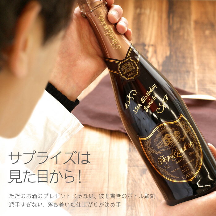 名入れ プレゼント ワイン 【 ロジャーグラート カヴァ ロゼ 750ml ボトル彫刻 】 名前入り 名入り ギフト 彫刻 刻印 スパークリングワイン 酒 お酒 結婚 祝い 結婚祝い 記念日 誕生日 送別会 退職祝い お祝い おしゃれ 出産 内祝い 名 名前 入れ Present Gift