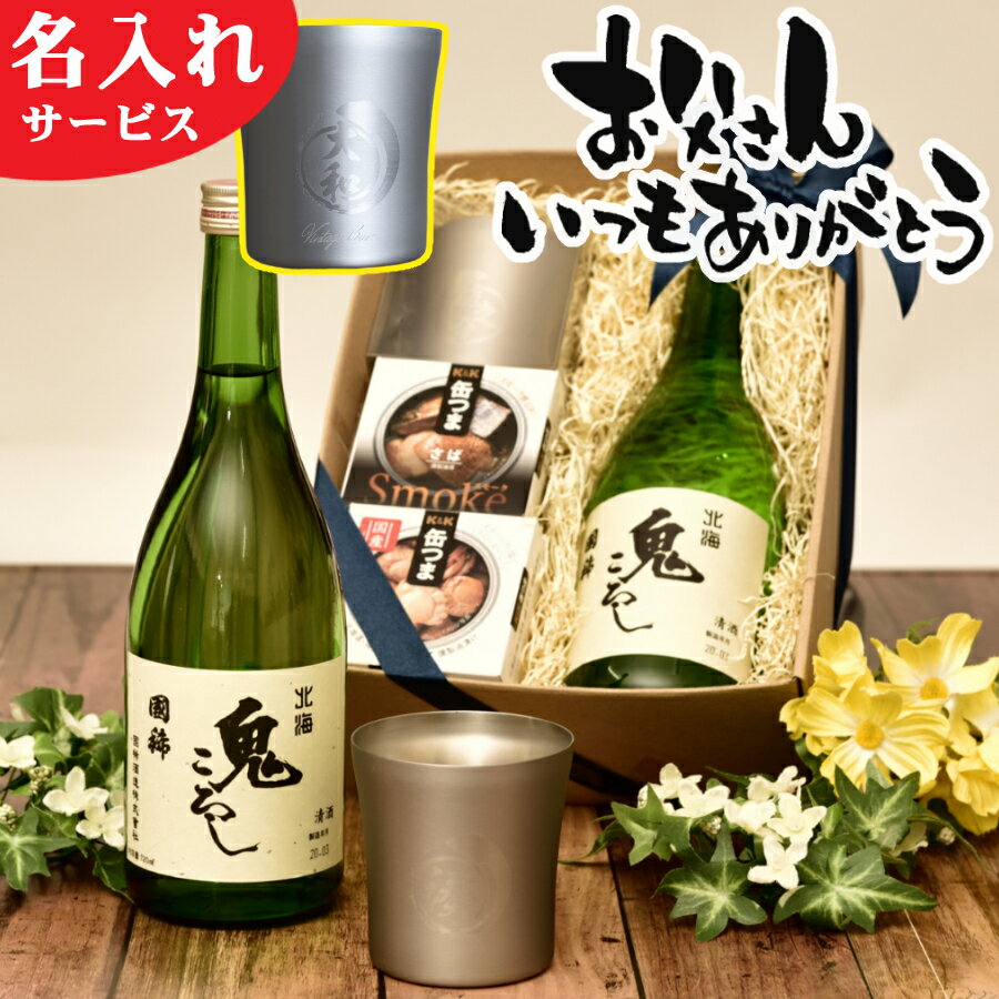 父の日ギフト プレゼント 【ギフトラッピング済 セット】 タンブラー(名入れ 刻印サービス) & 日本酒 国稀 鬼ころし 720ml & おつまみ6缶セット(缶つま) 父の日 ギフト 父の日プレゼント