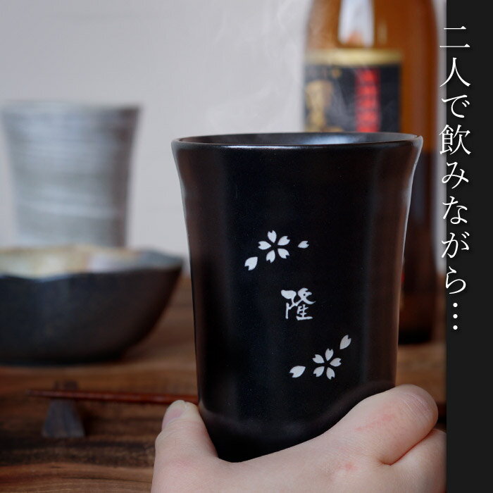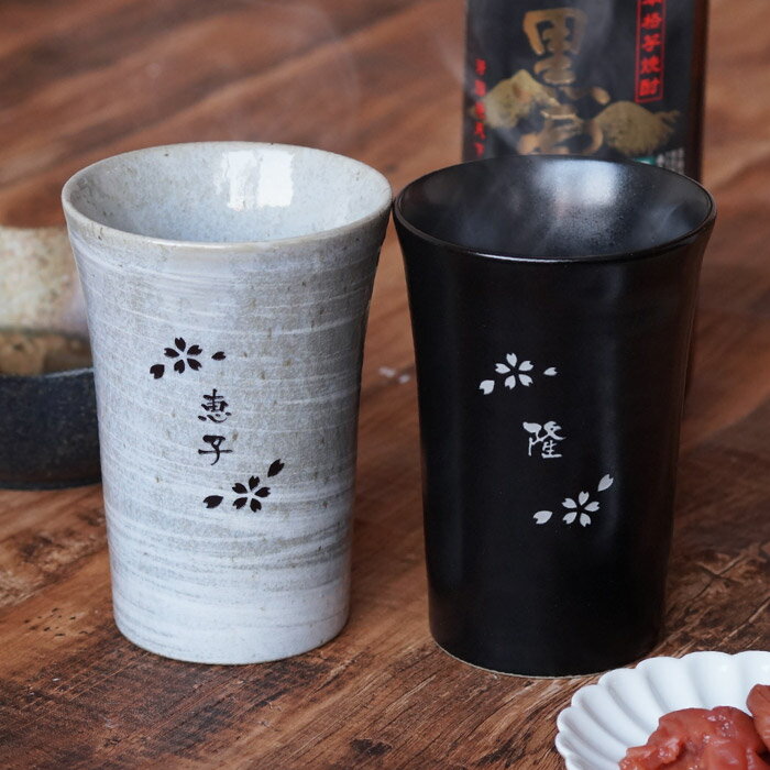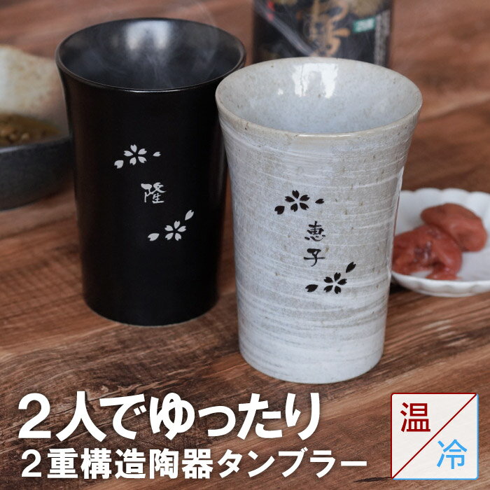 ギフト ペア 名入れ 送料無料 【 二重 陶器 タンブラー 桜 ペア 】 美濃焼 名前入り プレゼント 名入り ペアギフト 日本酒 ビール 焼酎 ロック グラス カップ 長寿祝い 還暦 両親 父 母 結婚 祝い 記念品 贈呈品 周年 刻印 彫刻 名 名前 入れ Present Gift Set
