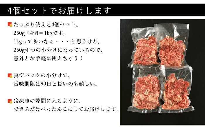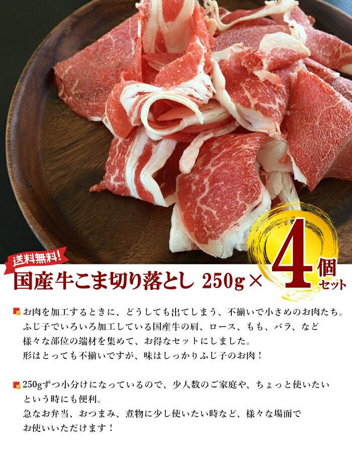 国産牛こま1kg【送料無料】250gx4パック 牛肉 切り落とし 国産牛 真空 小分け 人気 赤身 へルシー お肉 こま こま切れ 牛こまぎれ こま肉